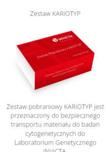 Następnie gotowe próbki są odbierane ze wskazanego przez Ciebie miejsca. Wysyłamy kuriera, a nad całym procesem czuwa nasze Biuro Obsługi Klienta. Dodatkowym wsparciem dla Ciebie jest wyznaczony opiekun z laboratorium genetycznego. Wyniki wydawane są on-line – dostępne również w systemie dedykowanym naszym klientom: Lab INVICTA.